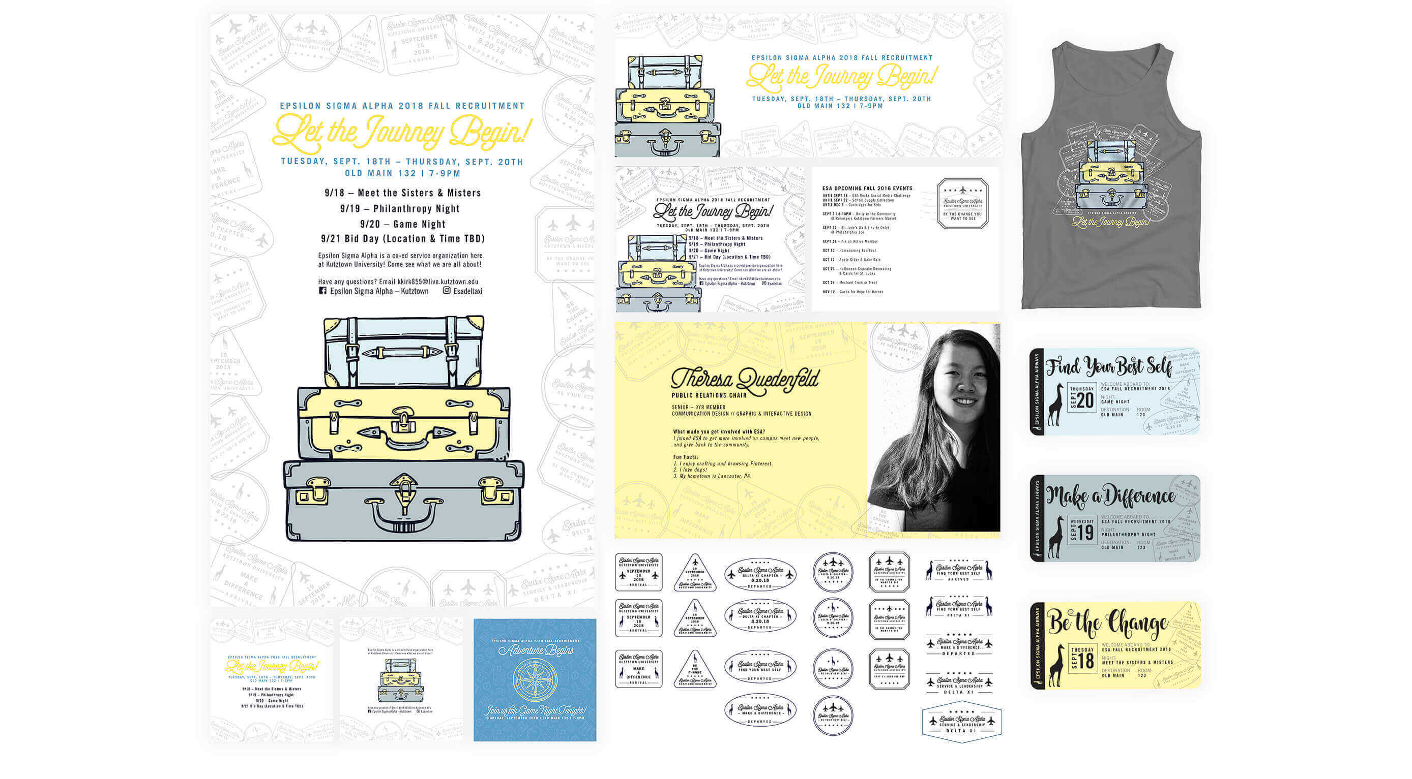 Throughout my time holding the position of public relations chair for the Delta Xi Chapter of ESA at Kutztown University, I was able to work on a variety of projects ranging from social media to apparel. For each event, I would be responsible for coming up with social media campaigns, content, and social media/digital graphics.